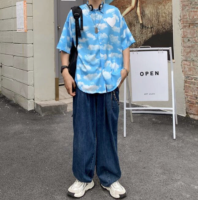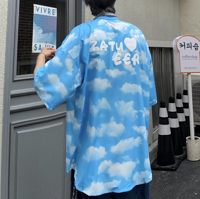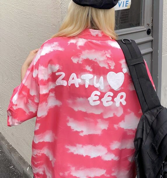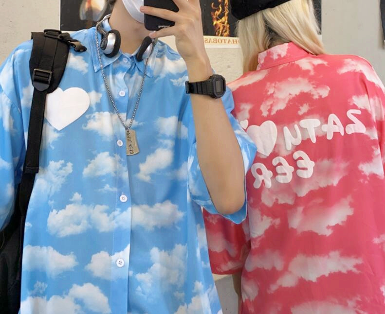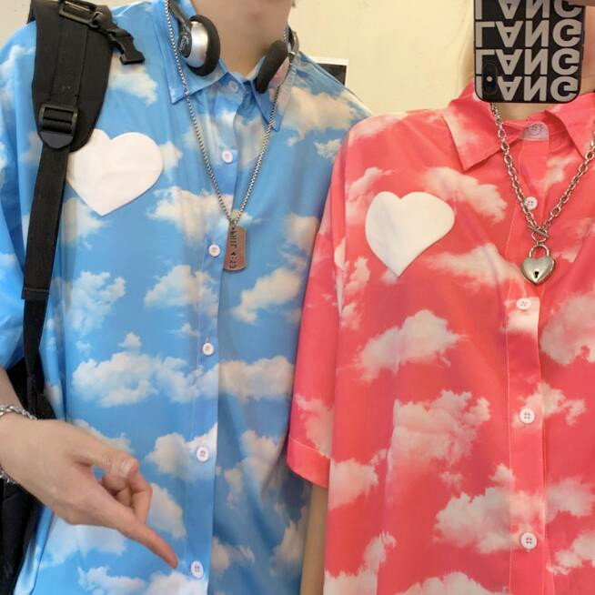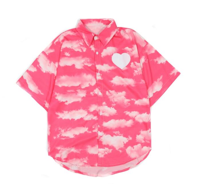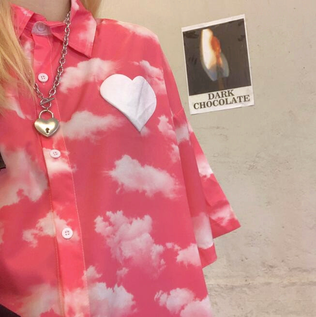 Ffashion & Chic love heart cloud pastel color short sleeve blouse shirt.