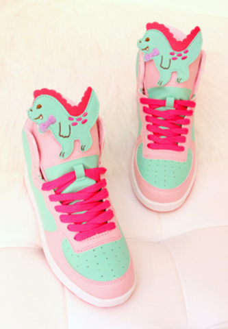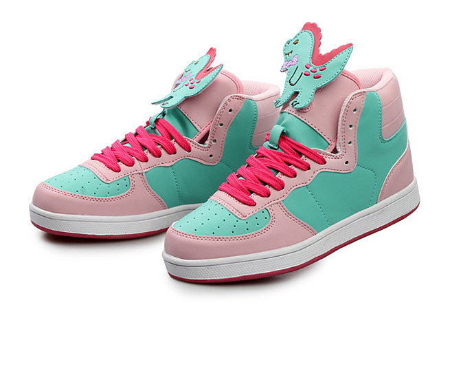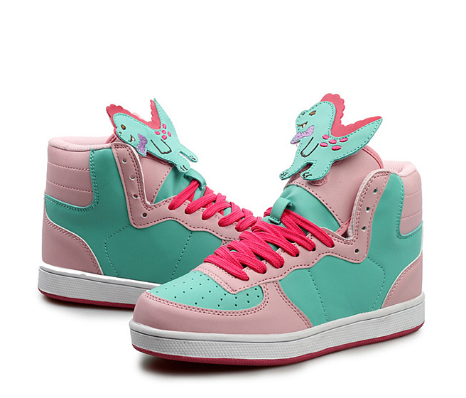 Harajuku & Fashion dinosaur color block high top Sneaker shoes.