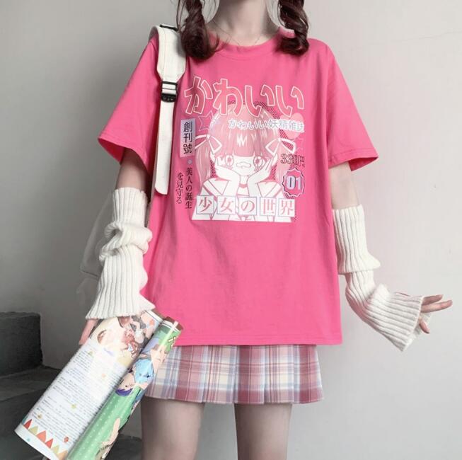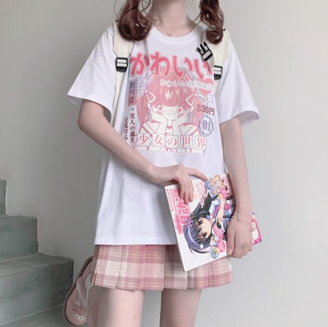 Fashion & Harajuku cartoon anime girl printed short sleeve t-shirt.