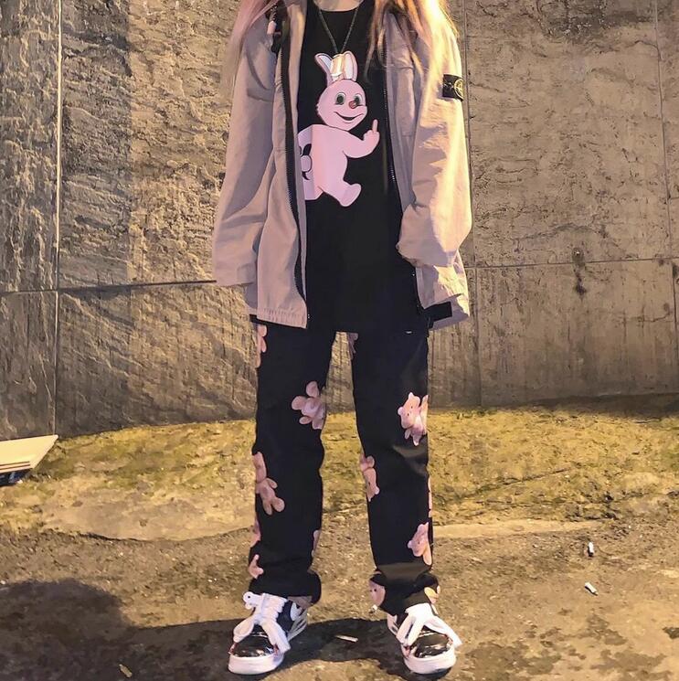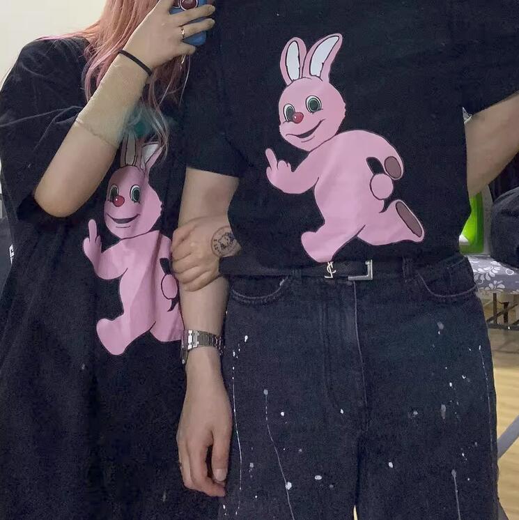 Fashion & Harajuku pink running bunny printed short sleeve t-shirt.
