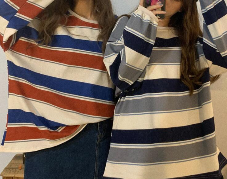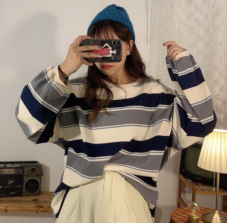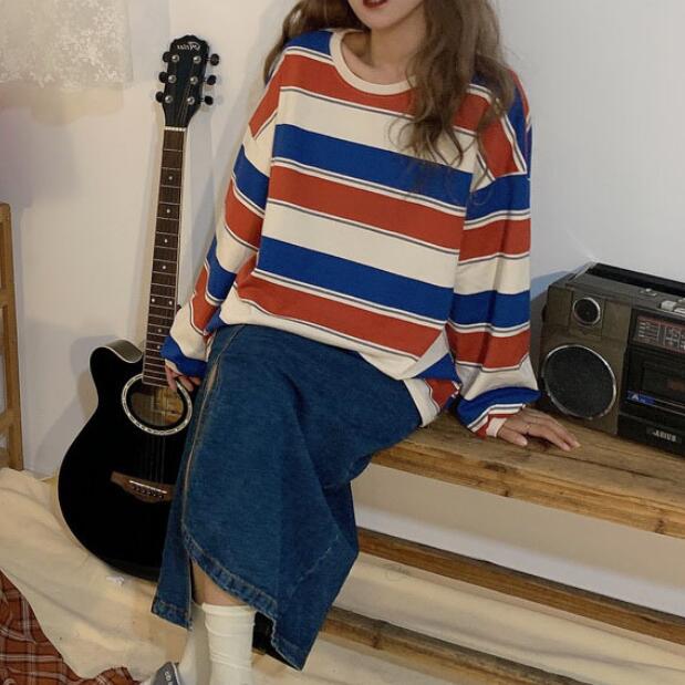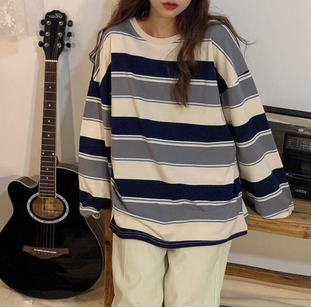 Fashion & Harajuku stripe oversized long sleeve t-shirt.