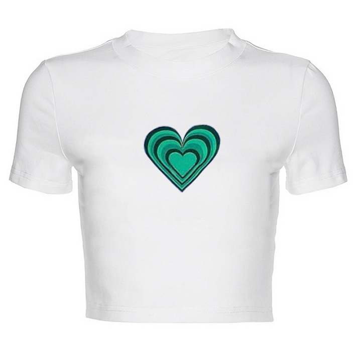Y2K & Harajuku green heart printed short sleeve tee.